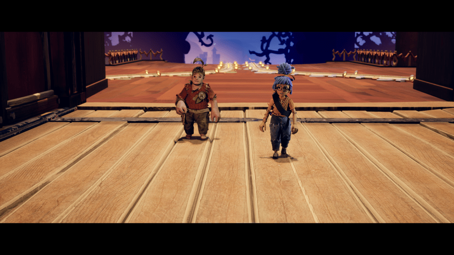 Moving along, you find yourself in the castle grounds. There’s a train circling the perimeter, balloons to pop, cannons to launch yourself out of, and toys running around. It’s an overall festive, fun environment that temporarily obscures the darkness around the corner.