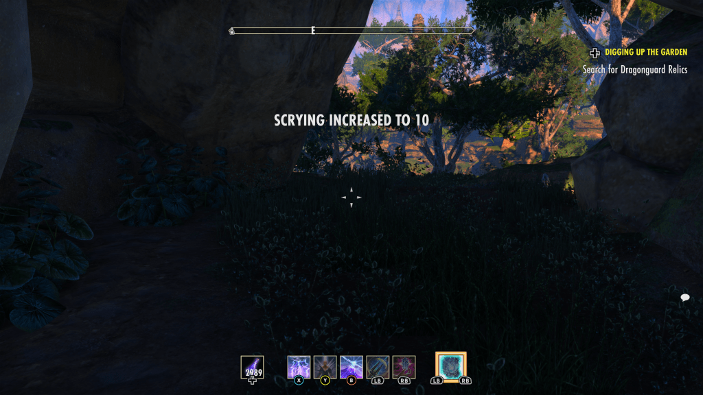 Anyway, I love how you can do absolutely nothing in this game and still enjoy it. I’ve played the shit out of this game, but I still log in regularly to do some meandering, nonsensical things. My recent achievement was maxing out the scrying and excavation skill lines. Before I talk about this too much, yes, this is gonna be nerdy, but it is a big time investment and I’m excited I got it done!