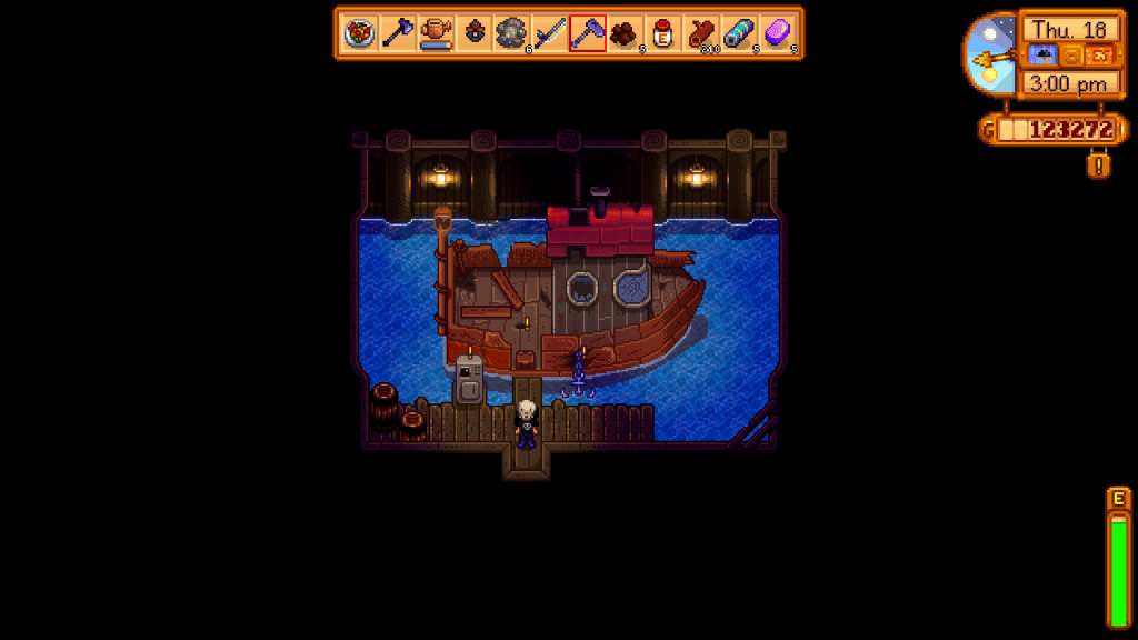 Phew, there’s a lot to cover here! Anyway, another thing that happened is Willy told me about an old boat he has that he’d like to fix up. It’s not cheap to fix it, requiring things like iridium bars and batteries, but it’s well worth it! Fixing the boat gives you access to Ginger Island and this is where things start getting really busy again.