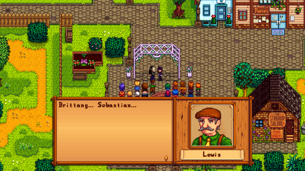 Last, but not least, I finally started trying to make friends with my neighbors. Leveling up your friendship with people and completing quests for them will earn you bonuses. Some essential recipes and tools will be gifted to you. I decided while I’m at it, it’s time to shoot my shot on someone. I’m gonna get married. Naturally, I went for the town emo, Sebastian.