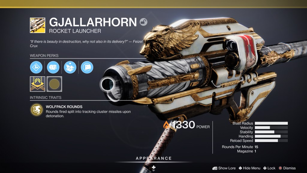 The other fun aspect of the dungeon is that it is linked to the gjallarhorn quest. Gone are the days of grinding out Atheon for the coveted drop! Aside from completing the dungeon (a requirement to get gally), the quest steps for this rocket launcher are really fast and easy. The gun is just as fun to use as it ever was and I really hope they don’t nerf it into oblivion. Side note, you’ll also find gjallarhorn’s catalyst through the dungeon. I haven’t really looked into it yet, but there are lots of guides and posts with the steps outlined already.