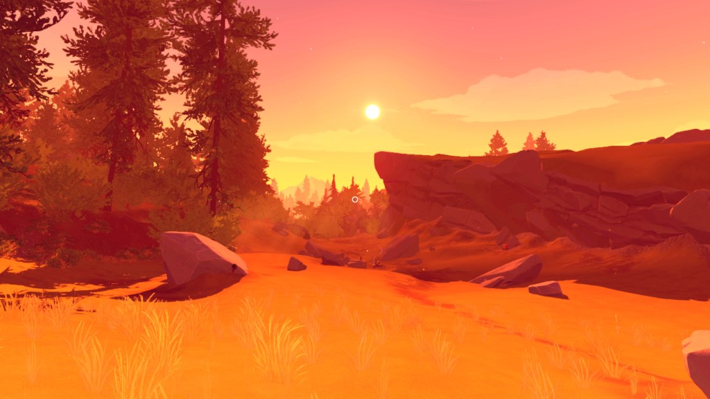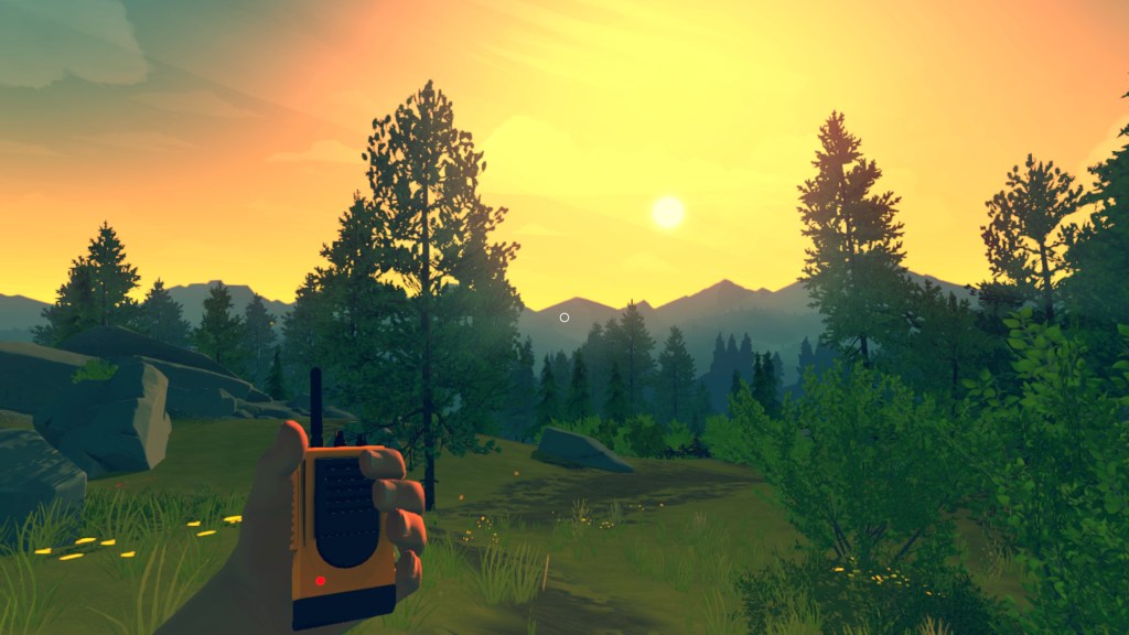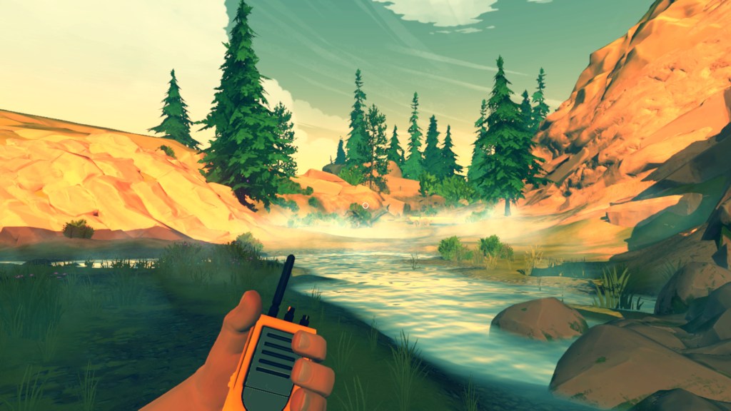 Firewatch is a narrative-driven game. You play as Henry, a man who starts a job as a firewatch for the season. While there is some action, it is largely an interactive walking simulator. The story unfolds through conversations you have over the course of the season you work. You are alone in the wilderness, confined to a tower and the surrounding area. The only way to communicate with the outside world is through a walkie-talkie. You spend your time talking to Delilah, another firewatch in the area who serves as your supervisor.
