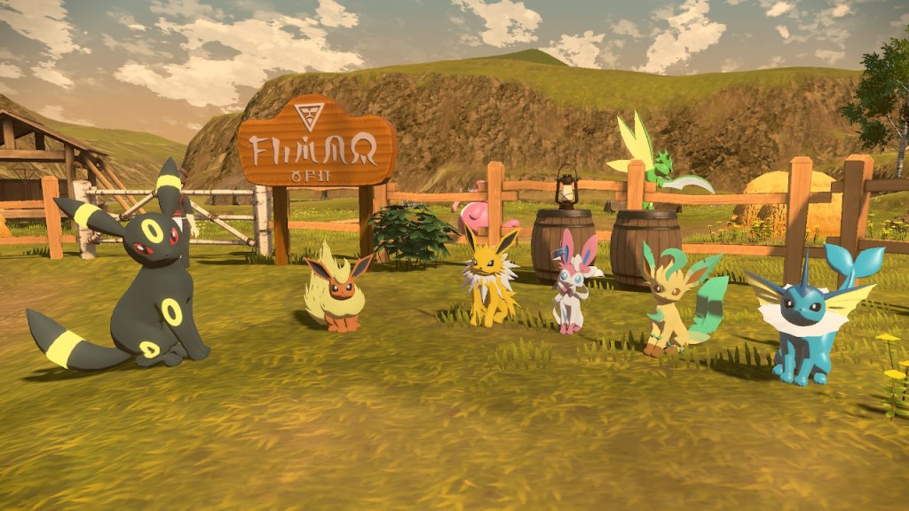 This is something I love just because I like seeing my Pokemon. I knew I could take out one and interact with it, but I also recently learned you can take your whole party out at once. This doesn’t do anything for the gameplay, but it is a cool thing to see your Pokemon side-by-side. In this next photo, you can clearly see that alpha sizes make for a big difference. My alpha Umbreon is much larger than all of the other Eevee evolutions.