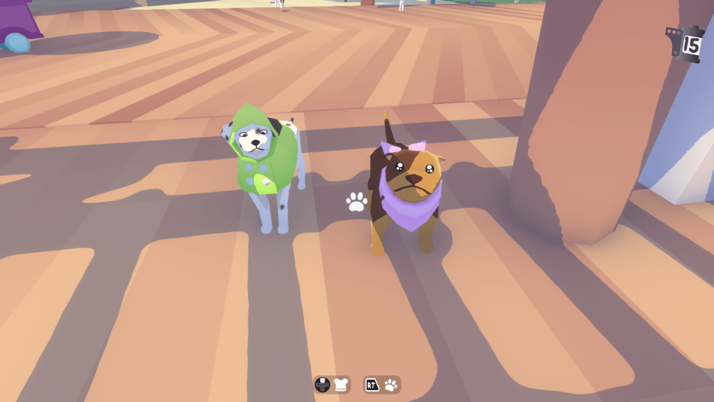 There’s all kinds of little weird quirks that you’ll uncover in the game. Some are related to the time of day you are exploring, others are situational. You can put outfits on dogs, give them props, and keep yourself easily entertained for a while. The game isn’t hard. It’s just a cute little game where you can play with virtual dogs and take pictures until you decide you’re bored.