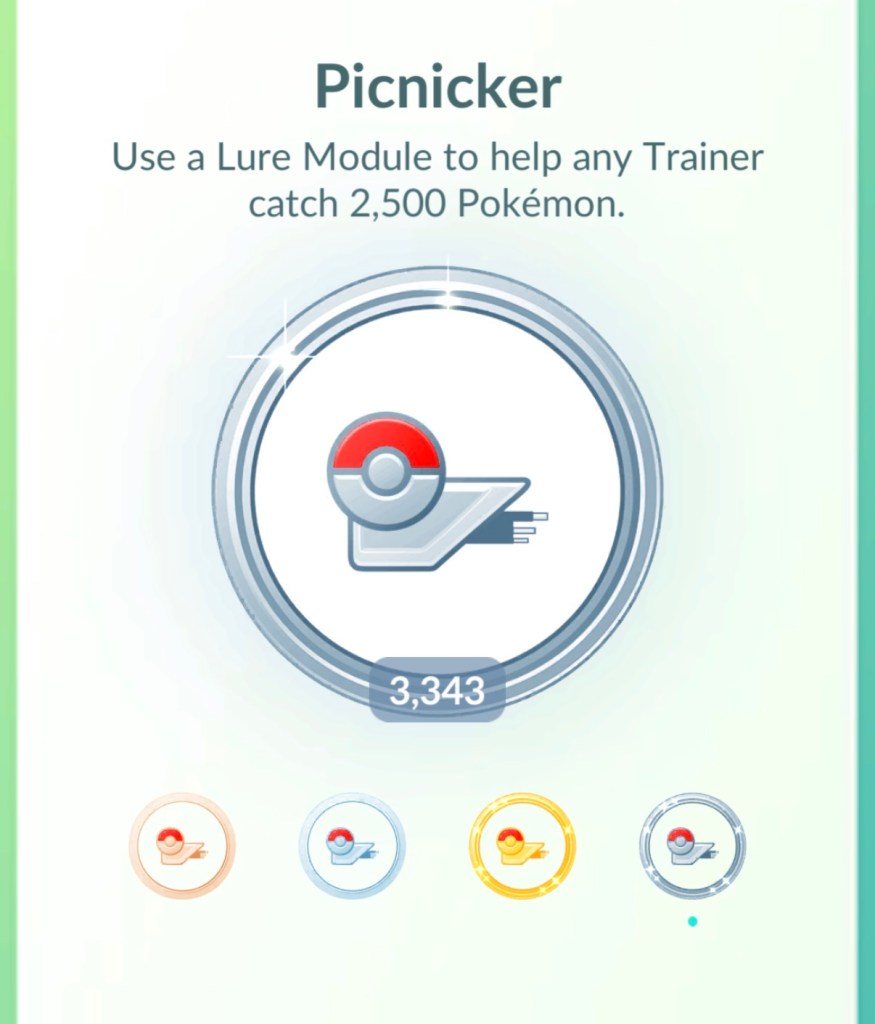 Before the event starts, there is nothing visible on the map. Once 9am hits, everything goes live at once. Pokemon spawn, Pokestops appear, and raids are visible. When the Pokestops appeared, they all had lures immediately. As we walked around catching things, I mentioned to my friends that I wanted to get my golden lure out if possible. I wanted to start getting more Gimmighoul coins and this would be beneficial to anyone around us. As we rounded a corner, my friend told me that two lures had just ended, meaning two more could be placed. I rushed into my inventory to drop them and… BOOM. Two lures, including my golden lure, were placed! At the time, I was 300 catches away from a platinum medal. In a matter of minutes, trainers caught over 1,000 Pokemon off my lures. The excitement was palpable! I had been struggling to get this done for a long time, hoping people were playing at busy places, but finally, at this event surrounded by thousands of people, I completed the Picnicker medal!